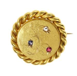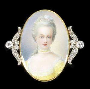 3216. Broche ornée d'une miniature figurant un portrait de femme dans...