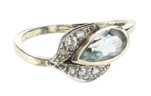 3219. Bague sertie d'une aigue-marine taille poire (env. 1 ct) épaulée...