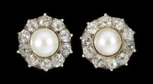 3222. Clips d'oreilles centrés de perles blanches (D env. 5,8 mm) ento...