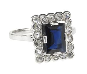 3226. Bague sertie d'un saphir taille rectangle (env. 1,8 ct) entouré...