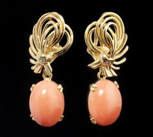 3230. Clips d'oreilles sertis chacun de corail taille cabochon ovale r...