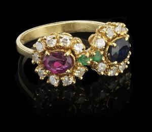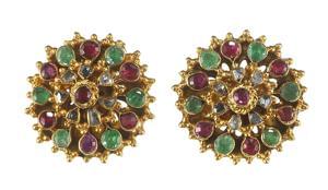 3235. Clous d'oreilles sertis de rubis, d'émeraudes et de roses de dia...