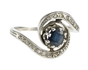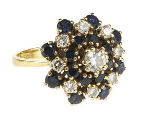 3281. Bague centrée d'un diamant (env. 0,3 ct) entouré de saphirs et d...