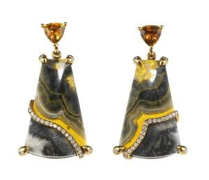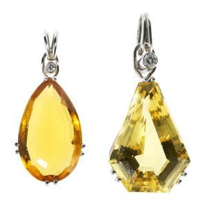 L'un serti d'une citrine taille poire (env. 10 ct) rehaussée d'u...