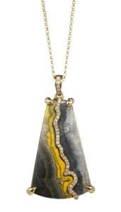 3254. *Pendentif serti d'un jaspe rehaussé d'une ligne sertie de diama...