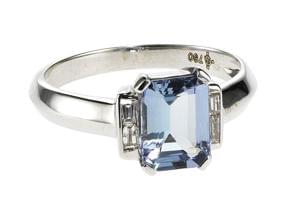 3258. *Bague sertie d'une topaze bleue taille rectangle (env. 1,3 ct)...