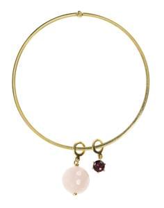 3259. Bracelet jonc retenant une boule de quartz rose et un grenat tai...