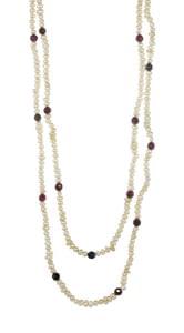3264. Sautoir composé de perles d'eau douce blanches ponctuées de rubi...