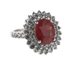 3209. Bague sertie d'un rubis taille ovale (env. 0,7 ct) rehaussé de p...