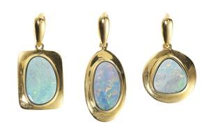 3213. Lot de trois pendentifs sertis d'opales à fond blanc