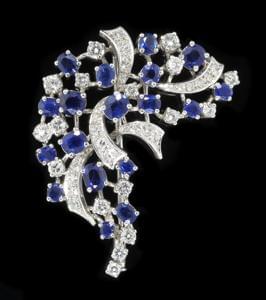 3272. Broche stylisée ajourée sertie de saphirs taille ovale et de dia...