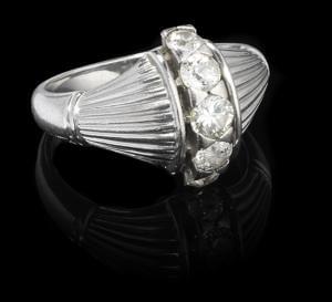 3274. Bague centrée d'une ligne de cinq diamants taille brillant et ta...