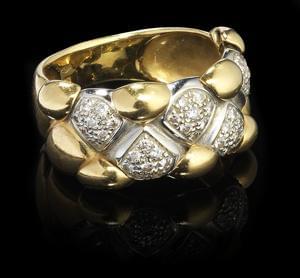 3286. Anneau bombé semi-pavé de diamants (env. 0,8 ct)