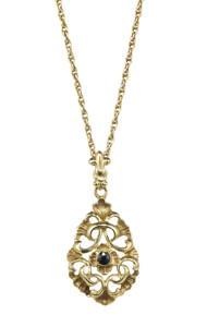 3284. Chaîne à maille fantaisie retenant un pendentif ajouré serti d'u...