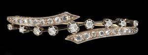 3287. Broche sertie d'une ligne de diamants taille ancienne sur chaton...
