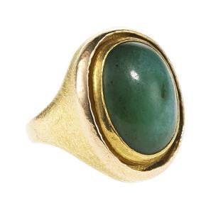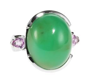 3293. *Bague sertie d'une chrysoprase taille cabochon ovale (env. 20 c...