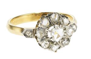 3210. Lot de deux bagues, l'une sertie d'une ligne de roses de diamant...
