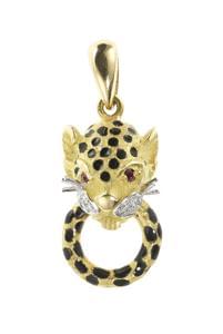 3299. Pendentif à motif de tête de panthère émaillée aux yeux sertis d...