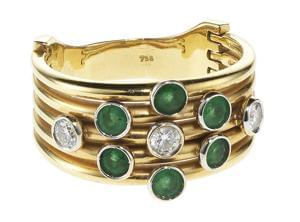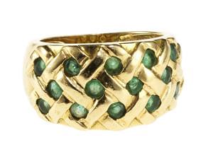 3317. *Bague bandeau pavée d'émeraudes taille brillant