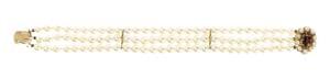 3308. Bracelet trois rangs de perles terminé par un fermoir centré d'u...