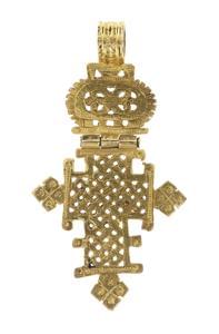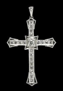 3315. Croix centrée d'un diamant taille ancienne (env. 0,1 ct) et aux...