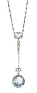 3329. Collier retenant un pendentif serti de deux aigues-marines