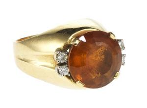 3331. Bague sertie d'une citrine ronde épaulée de part et d'autre de d...