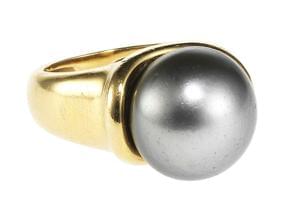 3341. Bague sertie d'une perle de Tahiti (D. env. 13,9 mm)