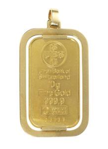 3342. Pendentif retenant un lingotin de 10 g de l'UBS, monté par Carl...