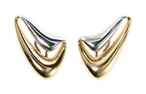 3360. Carl Bücherer, boucles d'oreilles à double motif godronné, l'un...
