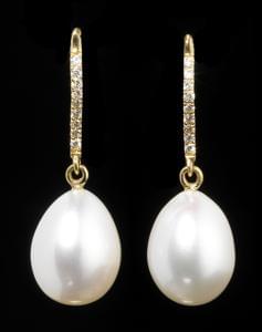 3366. Boucles d'oreilles centrées d'un petit diamant et retenant des p...