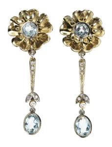 Centrées l'une d'une aigue-marine taille brillant, l'autre d'un...
