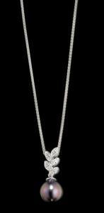 3369. Chaîne retenant un pendentif serti d'une perle de Tahiti en gout...