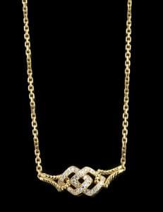 3376. Collier à maille forçat limée retenant un motif d'entrelacs ajou...