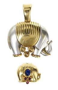 3377. Eric Bertrand, lot de deux pendentifs éléphants