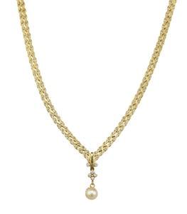 3387. Collier à maille plate retenant une perle (D env. 7 mm) rehaussé...