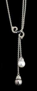 3394. *Collier retenant deux perles en négligé, l'une blanche, l'autre...