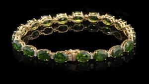 3395. *Bracelet ligne serti de diopsides taille ovale (env. 25 ct) alt...