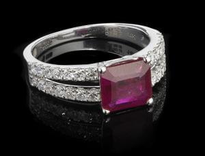 3396. *Bague sertie d'un rubis de Tanzanie non chauffé taille rectangl...