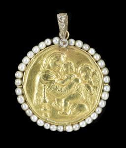 3397. *Médaille figurant une reproduction de "la Vierge à la Chaise" d...