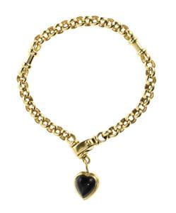 3399. Bracelet à maille ronde retenant un motif de cœur serti de corna...