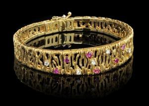 3401. Bracelet ajouré stylisé ponctué de diamants et de rubis