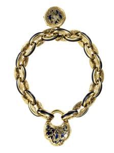 3402. Bracelet ciselé émaillé bleu terminé par un fermoir à motif de c...