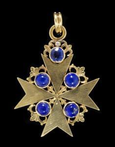 Sertie de quatre lapis-lazulis taille cabochon, rehaussée d'un s...