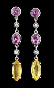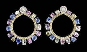 3428. Boucles d'oreilles circulaires serties de saphirs de couleurs, b...