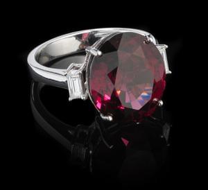 3409. Bague sertie d'une rhodolite non chauffée taille ovale (11,58 ct...