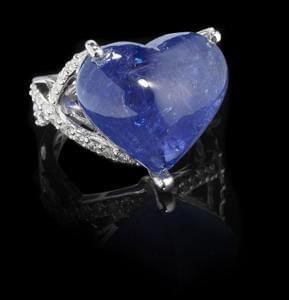3415. Bague sertie d'une tanzanite taille cœur épaulée de diamants (en...