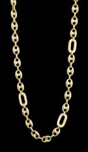 3424. Chaîne sautoir à maille gourmette plate ponctuée de motifs styli...