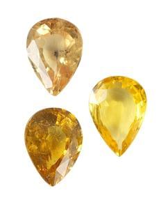 3436. *Lot de trois saphirs jaunes taille poire sur papier