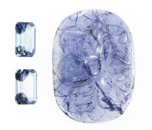 Une tanzanite gravée à décor floral (25,60 ct) et deux tanzanite...